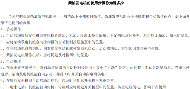 主页 > 技术支持 > 柴油发电机的使用步骤你知道多少