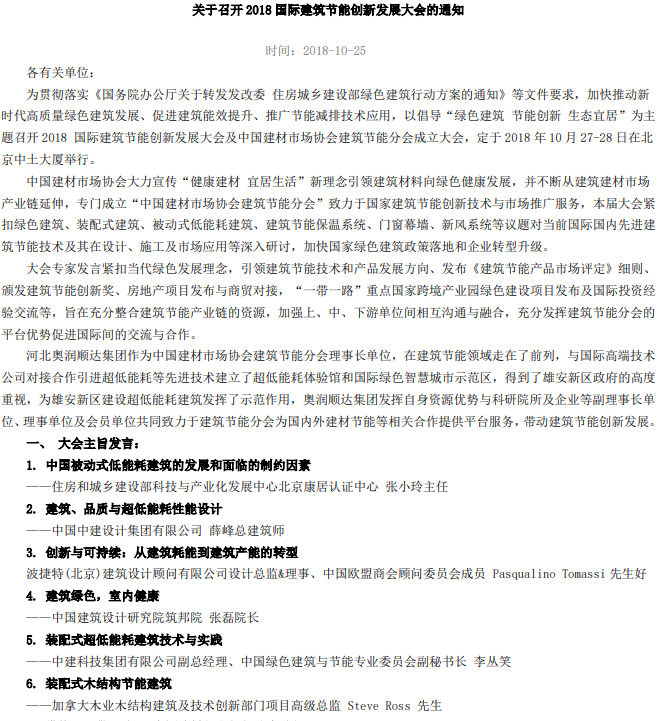 关于召开2018国际建筑节能创新发展大会的通知