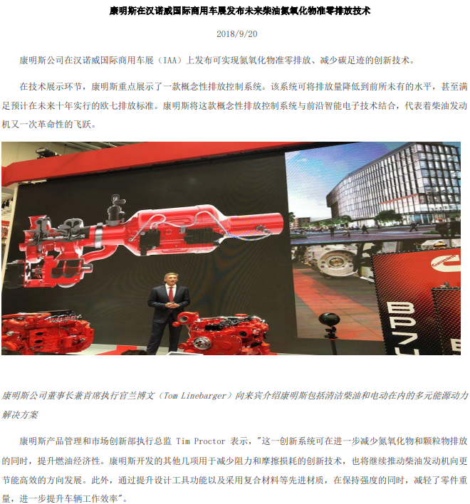 主页 > 新闻资讯 > 康明斯在汉诺威国际商用车展发布未来柴油氮氧化物准零排放技术