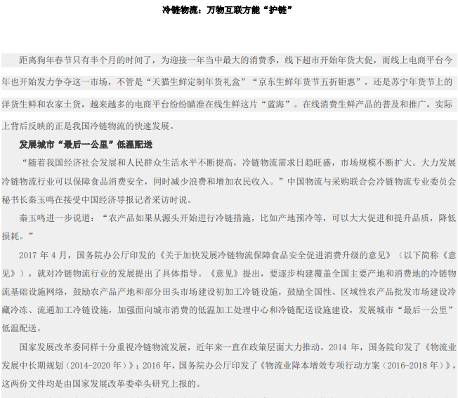 主页 > 新闻资讯 > 冷链物流:万物互联方能“护链”