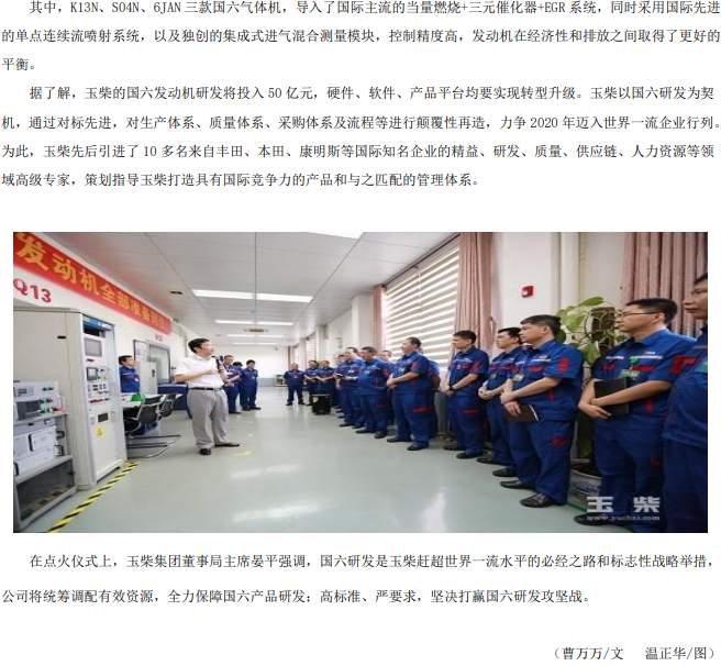 玉柴全系列国六发动机准备到位 企业迈向世界一流