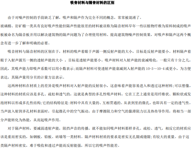 主页 > 技术支持 > 吸音材料与隔音材料的区别