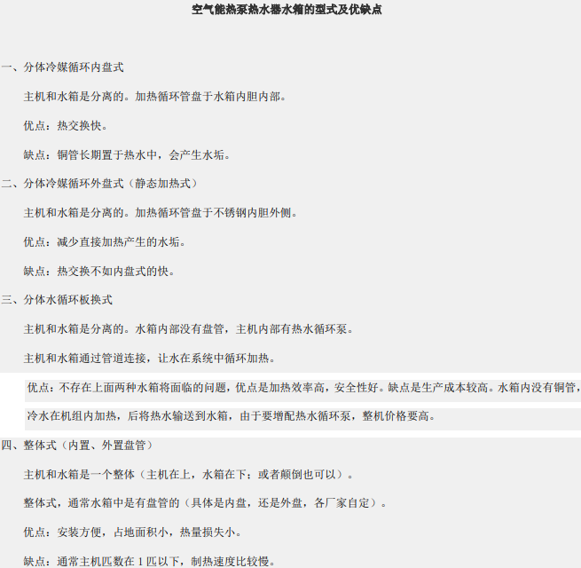 空气能热泵热水器水箱的型式及优缺点