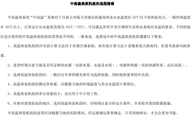 中高温热泵机组的选型指南