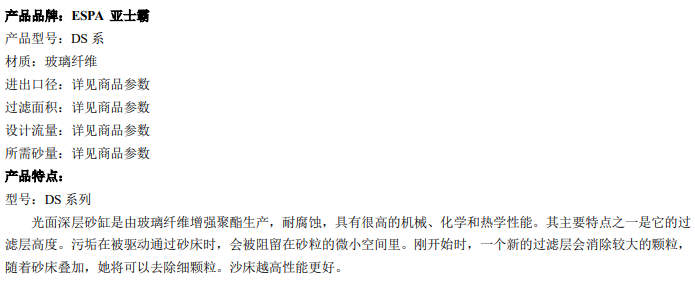ESPA亚士霸光面深层砂缸-DS系列