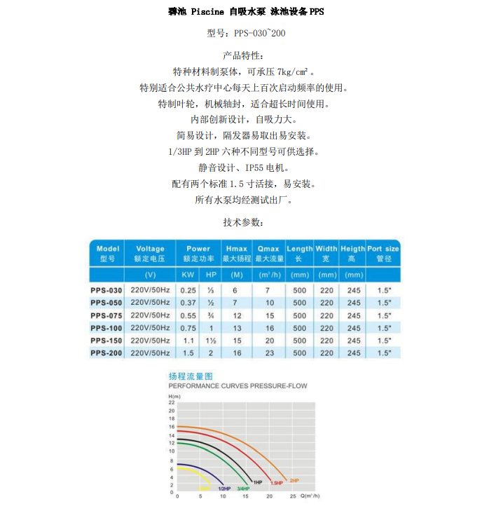 碧池 Piscine 自吸水泵 泳池设备PPS